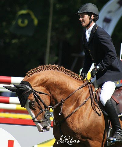 O cavaleiro alemão Daniel Deusser com o garanhão Caballero, foi eliminado na primeira passagem do GP de Aachen 2010 pois saltou por cima da bandeirola branca de um dos obstáculos.
